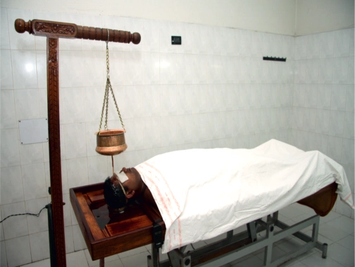 Siro-pichu : In this procedure, a cotton flap/folded cloth soaked in warm (according to the condition) medicated oil is kept on the head for specified time. It is very useful procedure for treating various head diseases and eye diseases.